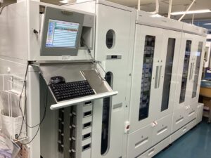 当院では入院および外来ともに電子カルテシステムと連携した調剤支援システム(自動薬剤ピッキング装置、自動散薬分包機、自動水剤分注器)を稼働させせることで正確な調剤を行うとともに調剤の効率化を図っています。