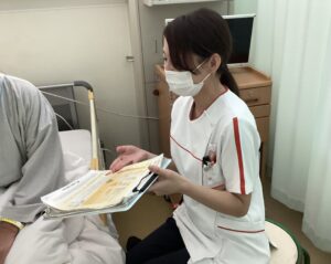 また、糖尿病の教育入院で入院中の患者さんには、他の医療スタッフと協力して、病気と薬について説明する教室を開いています。